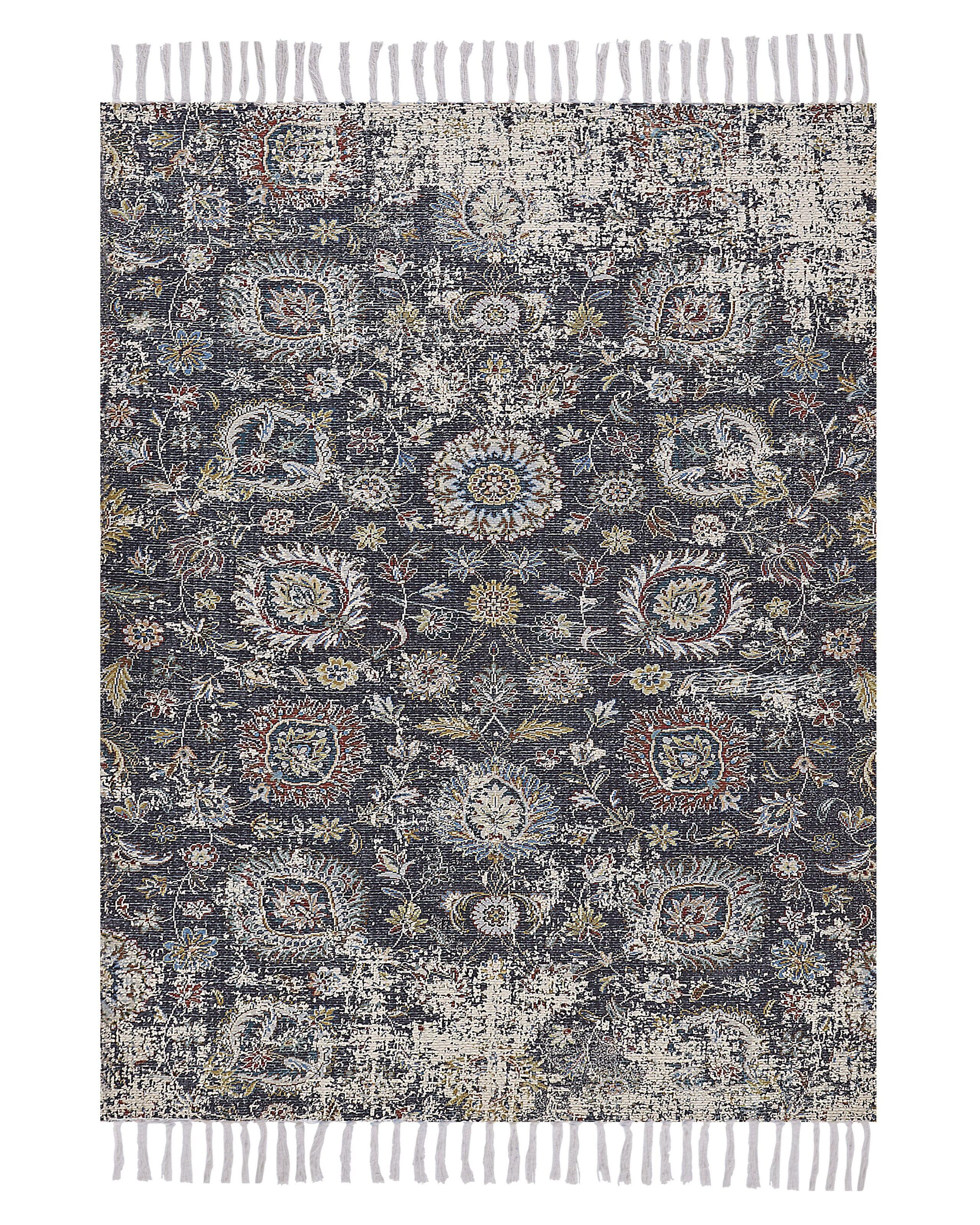 Prezioso tappeto in stile retro con motivo floreale e frange. Decora la casa con questo tappeto in stile classico. Realizzato a mano in soffice poliestere, facile da pulire, presenta un delicato motivo floreale con nappe decorative, che lo rendono ideale per il soggiorno o la camera da letto.