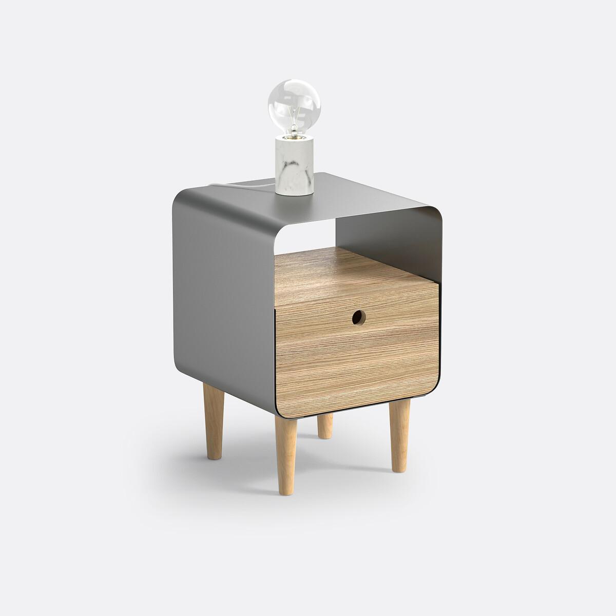 La Redoute Intérieurs, Nachttisch mit Eschenfurnier und Stahlmetall