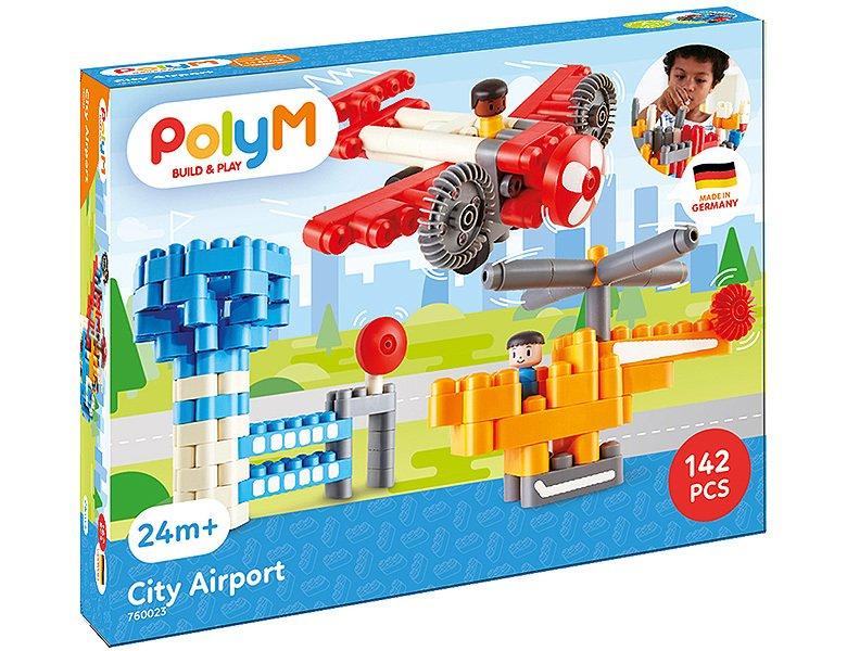 Gestalten Sie Ihren eigenen Flughafen mit diesem Bausatz. Der Lieferumfang umfasst 142 PolyM-Bausteine, Aufkleber und eine Bauanleitung. Die Bausteine sind aus flexiblem, lebensmittelechtem Polyethylen-Kunststoff gefertigt und 100% recycelbar. Ideal für kreative Bauprojekte und sicheres Spiel.