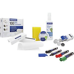 magnetoplan  Set di accessori per lavagna bianca, LARGE, pennarelli, calamite, detergente.