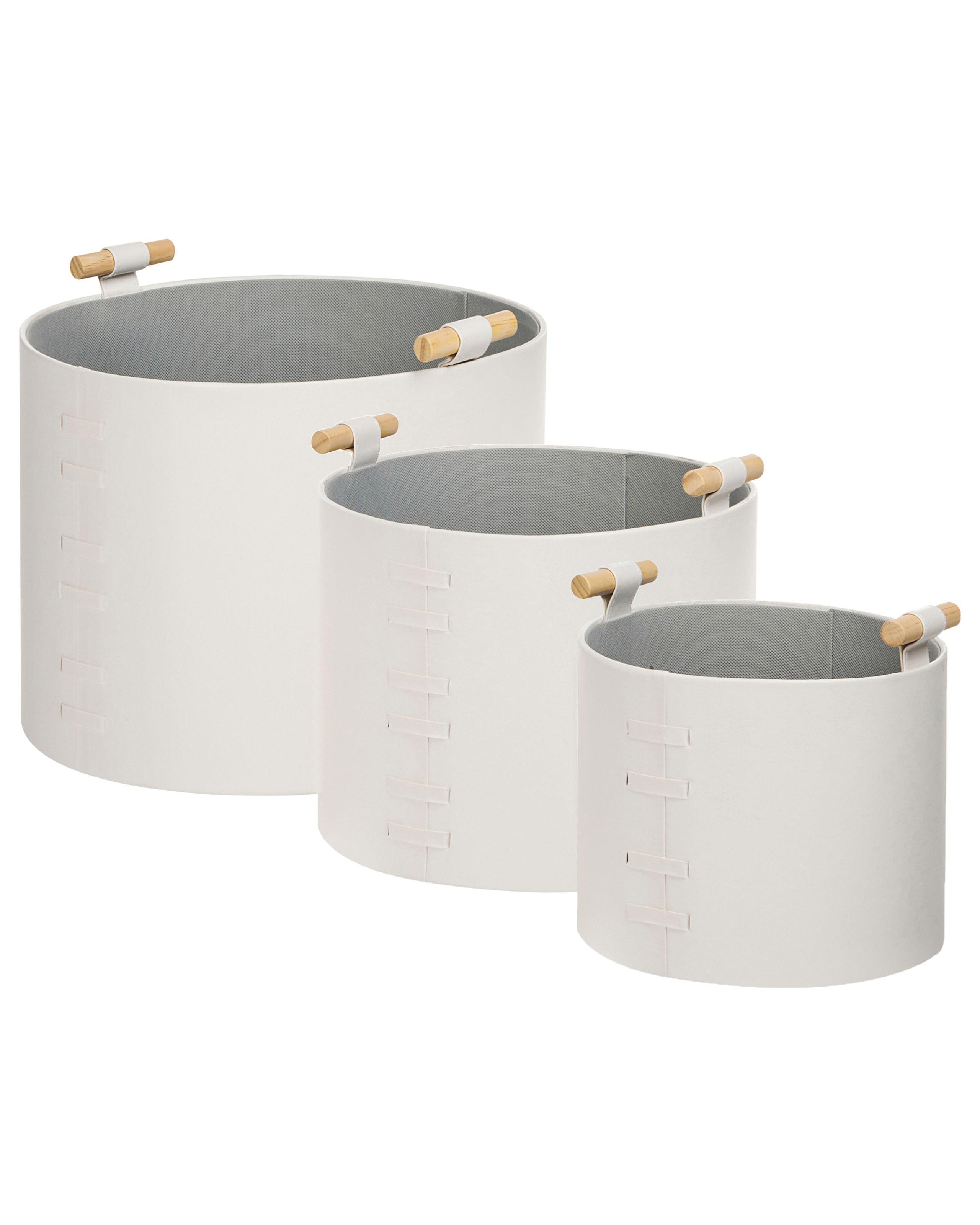 Scatole portaoggetti fatte a mano con maniglie. Migliora lorganizzazione della tua casa con questo elegante set di tre cestini in ecopelle di diverse dimensioni. Dotati di pratiche maniglie per un trasporto facile, uniscono funzionalità e design moderno. Ideali per riporre oggetti di uso quotidiano, si integrano perfettamente in soggiorni, corridoi o uffici, mantenendo lo spazio ordinato e con stile.