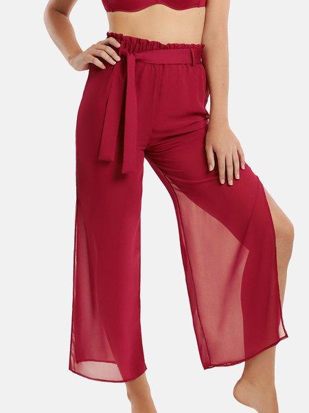 Eleganti pantaloni da spiaggia in chiffon di seta trasparente, con alti spacchi laterali. La parte superiore è foderata con una maglia di viscosa a forma di pantaloncino. La vita è larga 4 cm ed è elasticizzata per un comfort e una vestibilità ottimali.