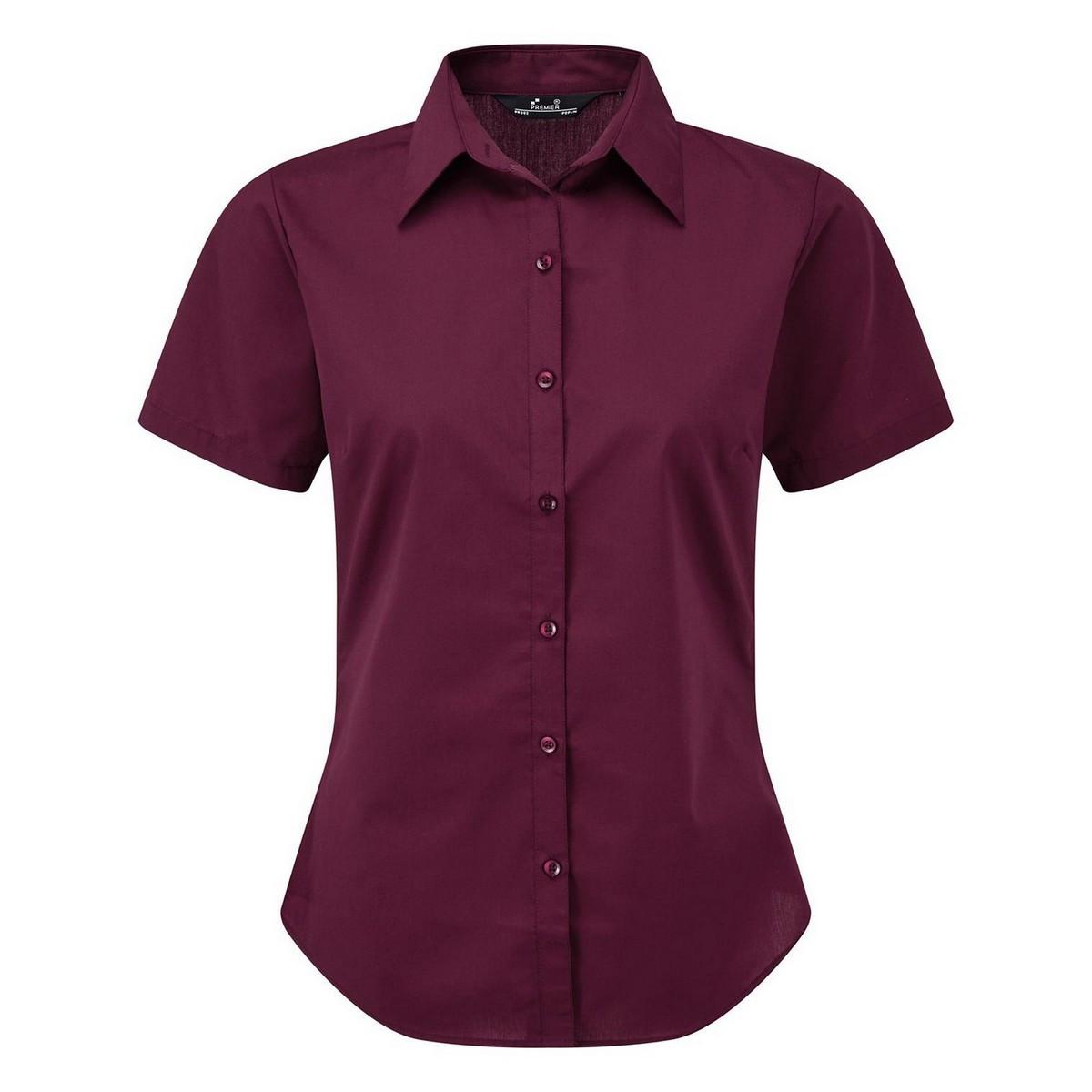 Questa camicia in popeline a maniche corte è una camicia da lavoro versatile, che offre un look classico e professionale. Presenta un colletto morbido e un orlo arrotondato. La vestibilità sartoriale include pinces sul busto e sulla schiena per una silhouette lusinghiera. Il materiale di facile manutenzione e le maniche corte la rendono adatta a vari contesti professionali.