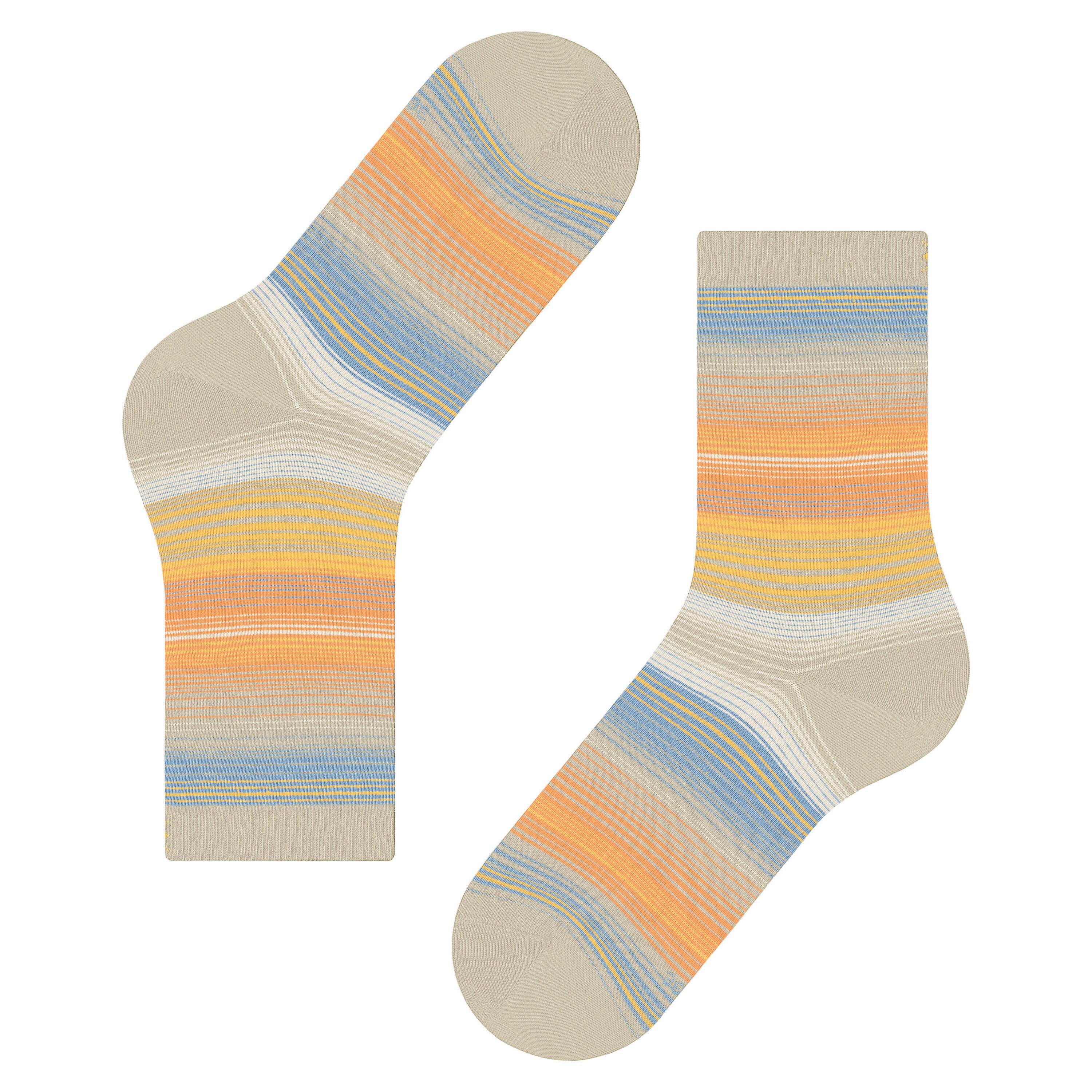 Il classico motivo a righe di questi calzini è particolarmente elegante. La miscela di cotone mercerizzato e viscosa conferisce a queste calze un'elegante lucentezza e le rende molto comode da indossare. Il design è completato dal femminile orlo arrotolato.
