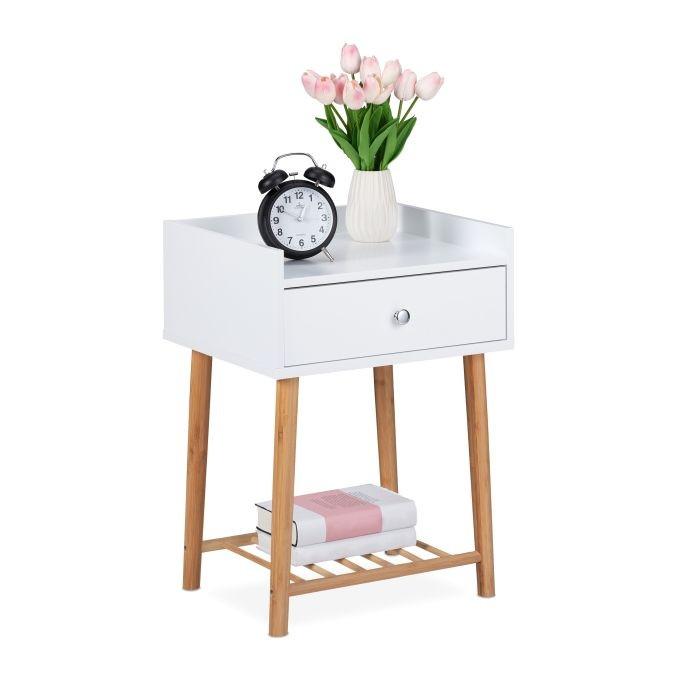Ravviva la tua camera da letto con questo elegante comodino, che offre stile e funzionalità per tenere gli oggetti essenziali a portata di mano. La sua elegante finitura in MDF bianco e bambù si abbina perfettamente a qualsiasi arredamento.
