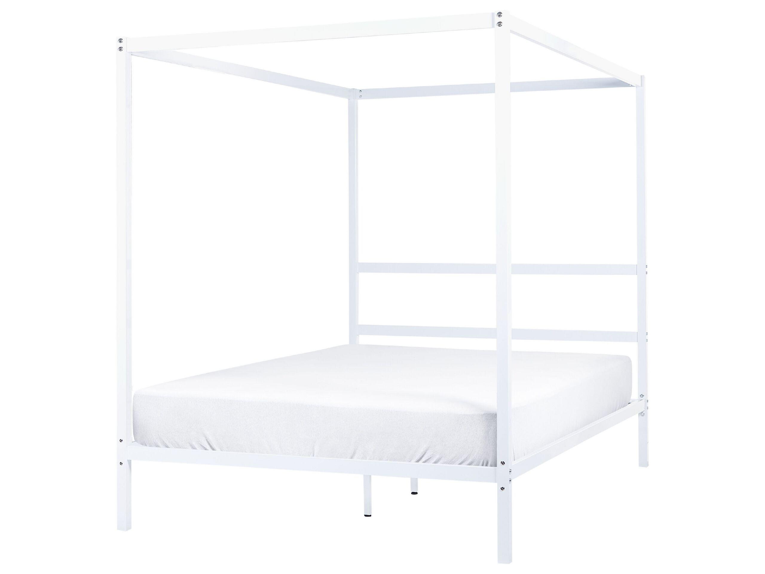 Elegante letto matrimoniale a baldacchino. Questo letto a baldacchino trasformerà l'arredamento della tua camera da letto e ne diventerà il punto focale. Caratterizzato da una robusta struttura in metallo bianco, il letto aggiungerà un tocco di minimalismo ed eleganza a tutta la camera. Il suo design speciale permette di appendere tende, luci o altri ornamenti per creare un'atmosfera calda e romantica, garantendo al tempo stesso comfort e privacy. La resistente rete a doghe offre un buon sostegno al corpo e contribuisce a un sonno sano.