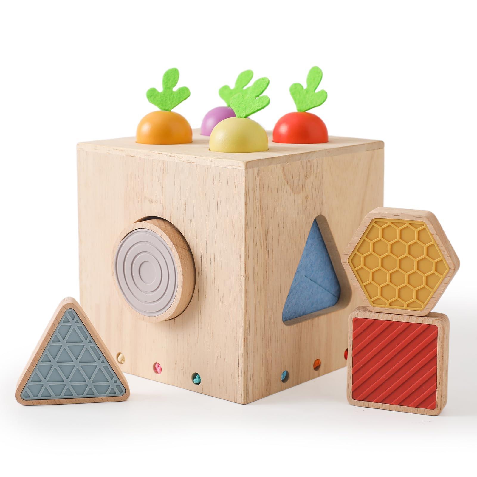 Activity-board, Karotte pegging Spiel hölzerne motorische Fähigkeiten Würfel Spielzeug sensorische Sortierspiel Form Sortierer pädagogisches Spielzeug