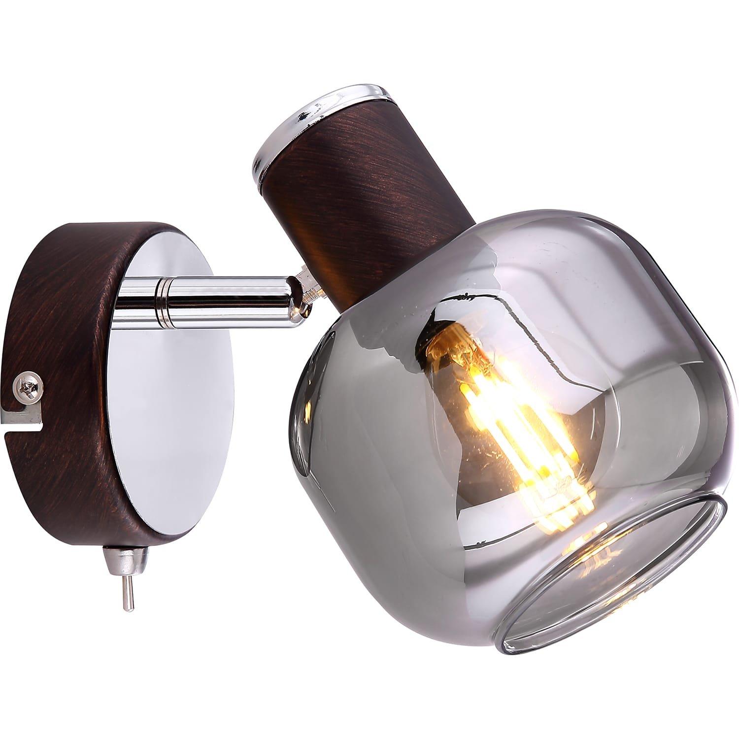 Faretto in metallo color bronzo, cromo, vetro fumé, interruttore, LxH: 100x125, AL: 160, escl. 1xE14 40W 230V