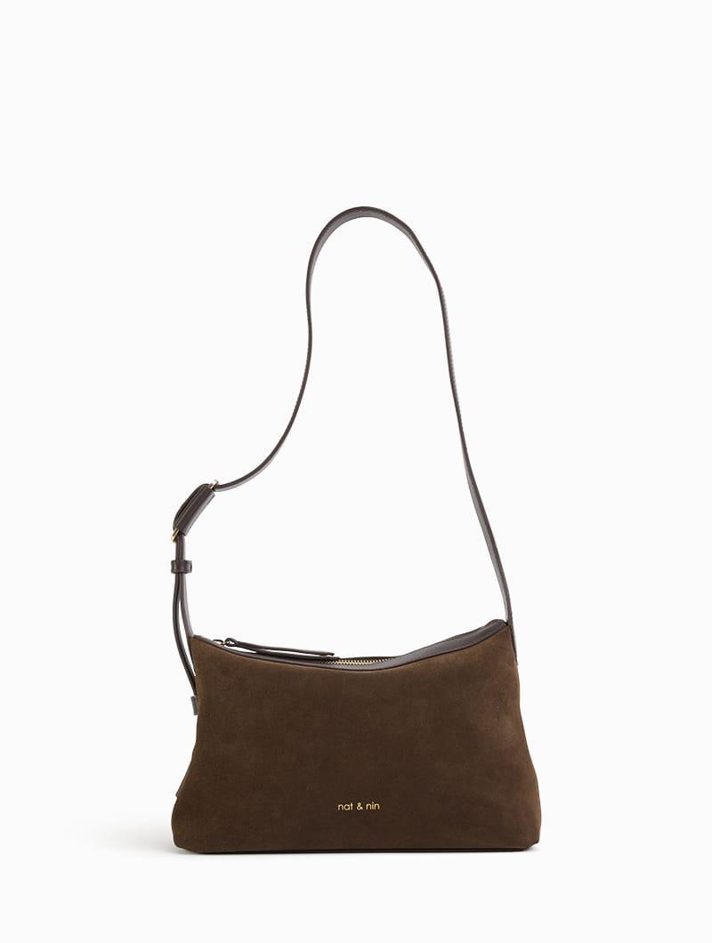 La borsa è dotata di una cerniera dorata tono su tono, che garantisce una sicurezza ottimale per gli effetti personali. Il design ergonomico e pratico di questa borsa a tracolla permette di indossarla comodamente sulla spalla, offrendo al contempo spazio sufficiente per riporre gli oggetti. La borsa a tracolla Bowie è dotata di un'unica tracolla in pelle, che aggiunge un tocco di raffinatezza al suo design. L'incisione del logo «nat & nin» sulla parte anteriore della borsa aggiunge un tocco personale al suo design elegante.