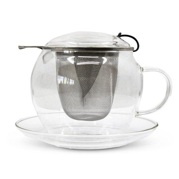 Glastasse mit Untertasse, Glasdeckel + Edelstahlfilter, im Geschenkkarton
