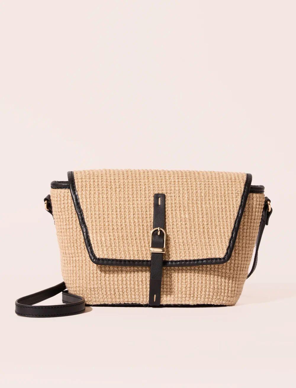 La borsa a tracolla Lenny di Maradji è un accessorio estivo di tendenza, perfetto per le uscite estive o le gite in spiaggia. Questa borsa in paglia beige presenta una fodera in 100% cotone e misura 24 x 15 x 7 cm. Ha una patta con chiusura a patta e una cintura con fibbia in pelle nera, fissata da una fibbia in metallo dorato. Una tracolla regolabile in pelle nera, attaccata a dettagli metallici, permette di indossare questa borsa con stile. Il design semplice ed elegante di questa borsa in paglia è ideale per le gite di un giorno o le fughe estive.