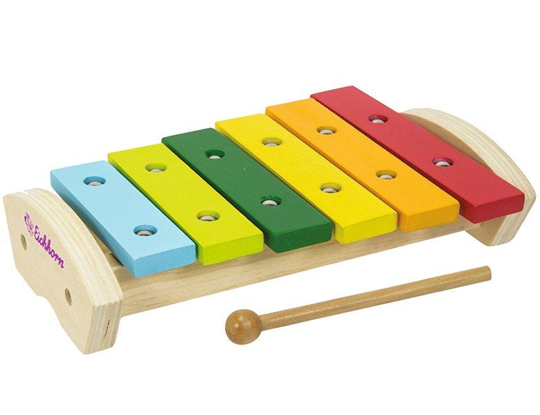 Dieses farbenfrohe Xylophon aus Holz fördert die musikalische Entwicklung von Kindern. Die bunten Töne helfen, die auditive Wahrnehmung zu schulen. Das Xylophon misst 24 x 15 cm und wird aus 100% FSC-zertifiziertem Holz hergestellt. Es ist robust und sicher für kleine Hände.