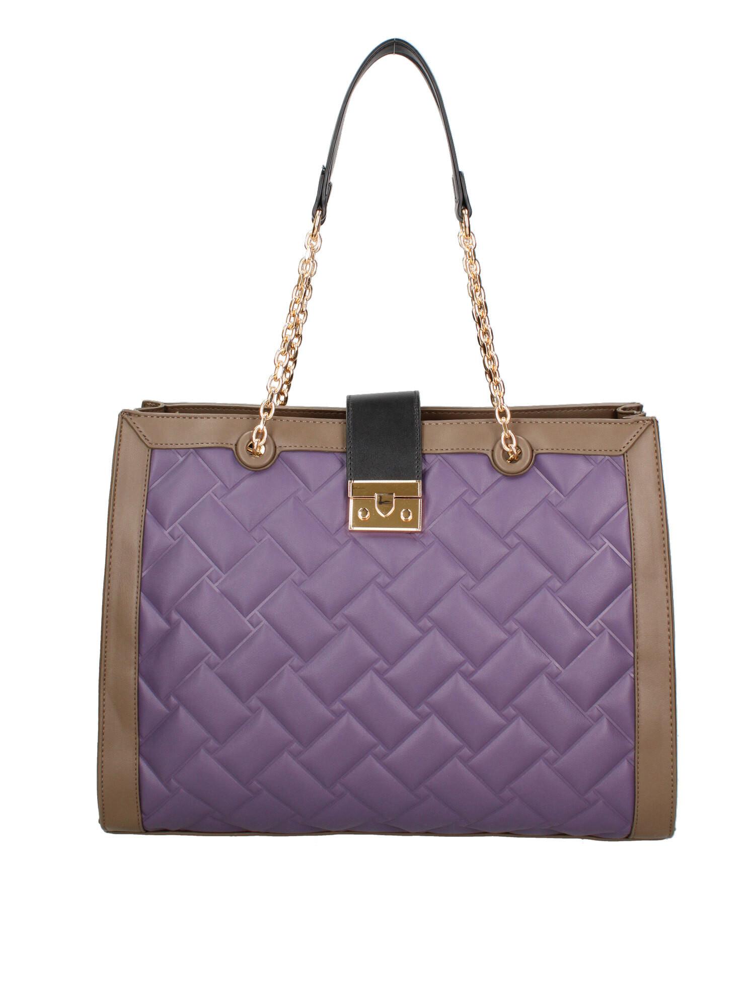 Questa borsa shopper combina praticità con un design chic, rendendola un accessorio versatile per varie occasioni. Il pannello frontale trapuntato aggiunge un tocco di sofisticazione, mentre i pannelli laterali a contrasto e il manico superiore creano un look raffinato. La borsa è assicurata con una chiusura a girello elegante, garantendo la sicurezza degli effetti personali.