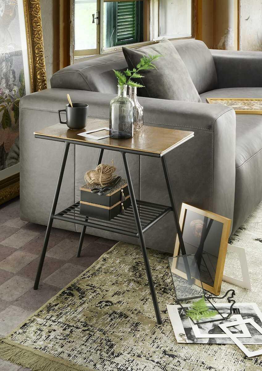 Tavolino Victory alluminio oro antico metallo nero opaco (larghezza x altezza x profondità) circa 52x60x30cm