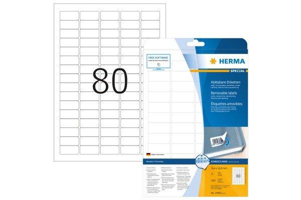 HERMA, HERMA Etikett. Movables 35,6x16,9mm 10003 weiss,non-perm. 2000St./25Bl.