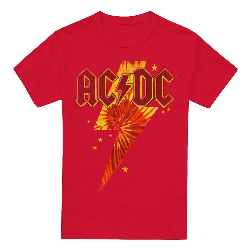 Questa T-shirt ACDC presenta un classico girocollo e maniche corte, offrendo una vestibilità comoda e versatile. La parte anteriore è adornata con una stampa grafica audace dell'iconico logo ACDC, che incorpora un design a fulmine con un effetto tie-dye e piccole stelle, rendendola un capo distintivo per i fan. Questo prodotto è ufficialmente concesso in licenza.