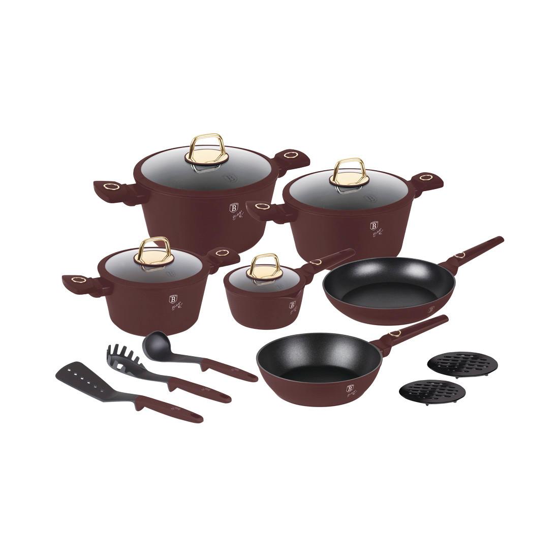 Berlinger Haus, Kochgeschirr-Set 15-teiliges matt bordeaux Leonardo Collection