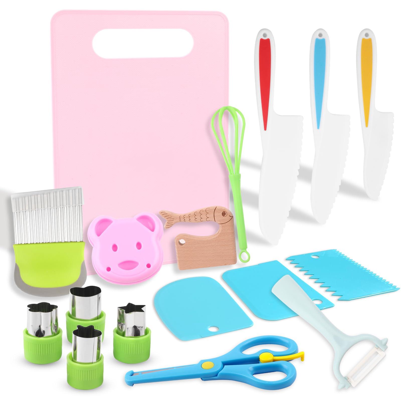 Activity-board Kindermesser, 17-teiliges Kindermesser-Set Küchenmesser Kinder, Messerschneideset mit Schneidebrett, Gemüseschneider und Schäler