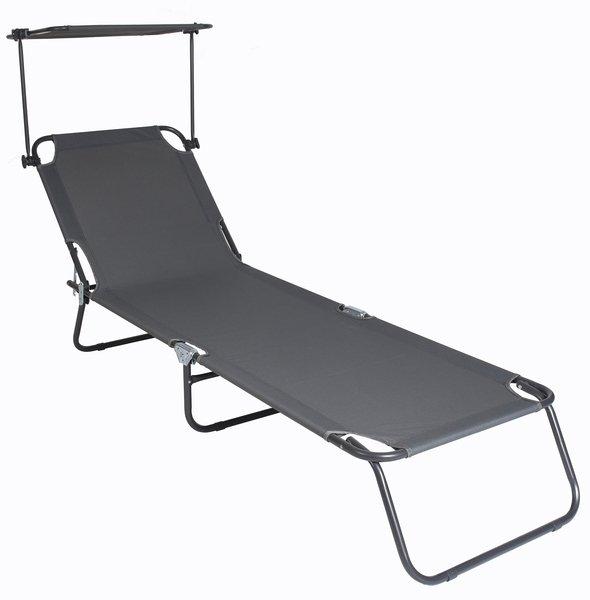 VCM Sonnenliege klappbar | Maße ca. L. 185 x H. 24 x B. 55 cm | Gartenliege faltbar | leicht und kompakt | Liegestuhl mit verstellbarem Sonnendach
