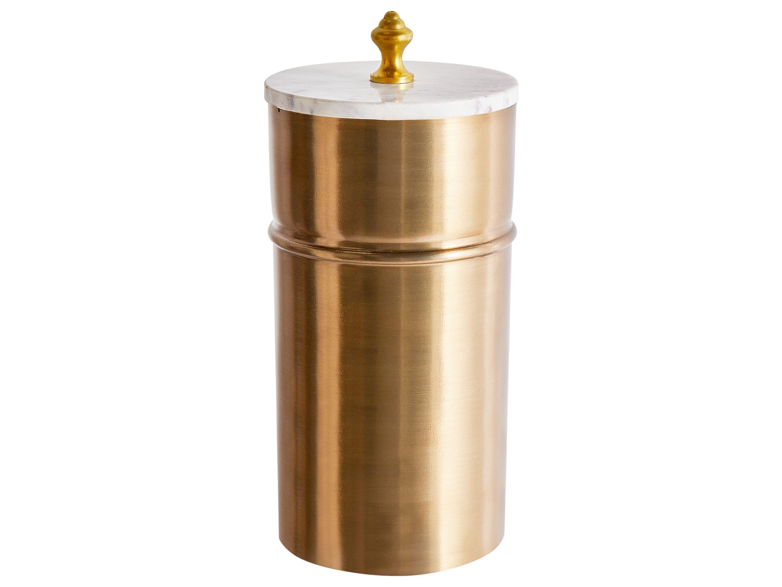 Contenitore in metallo con coperchio per bagno. Apri le porte all'eleganza dello stile glamour in bagno o in soggiorno con questo barattolo decorativo. Realizzato in durevole e resistente metallo, grazie al coperchio effetto marmo e al pratico manico, è perfetto per tutti i tuoi accessori o prodotti per l'igiene.