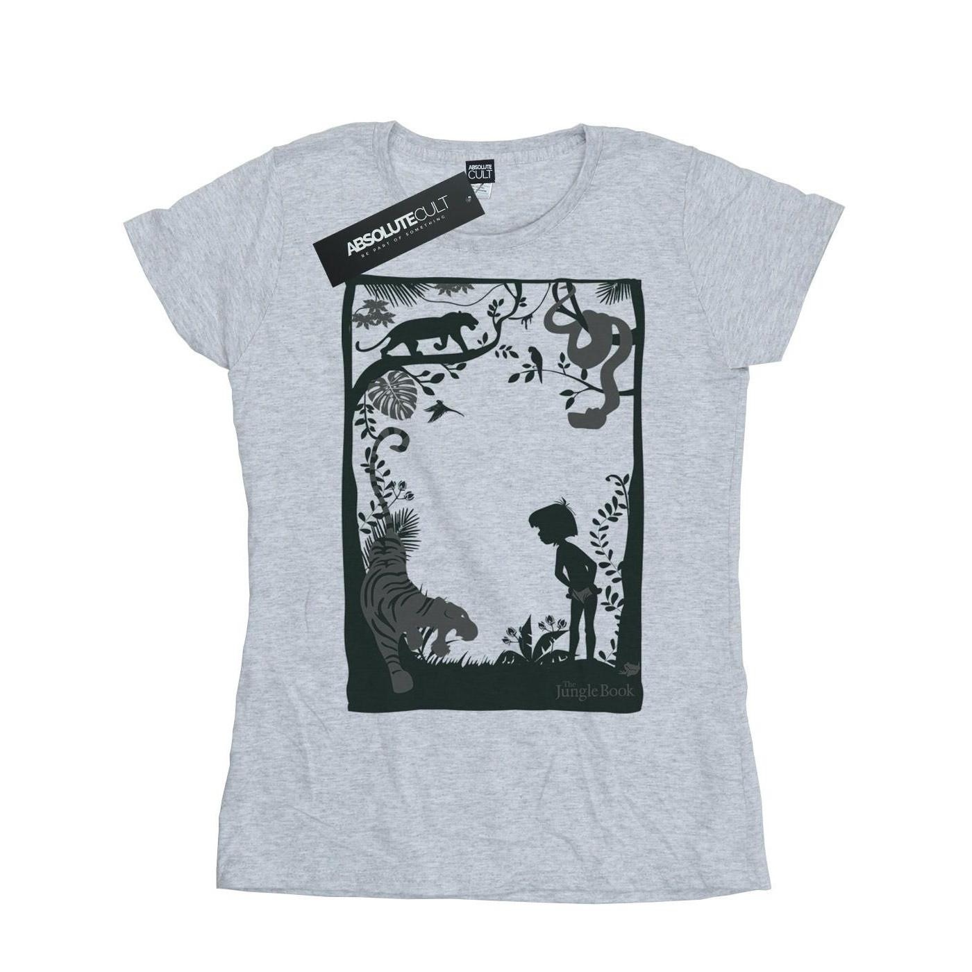 Questa T-shirt presenta un classico girocollo e maniche corte, offrendo una vestibilità comoda e versatile. Il design mostra una silhouette dei personaggi de Il Libro della Giungla, incorniciata dal fogliame della giungla, rendendola un capo distintivo per i fan.