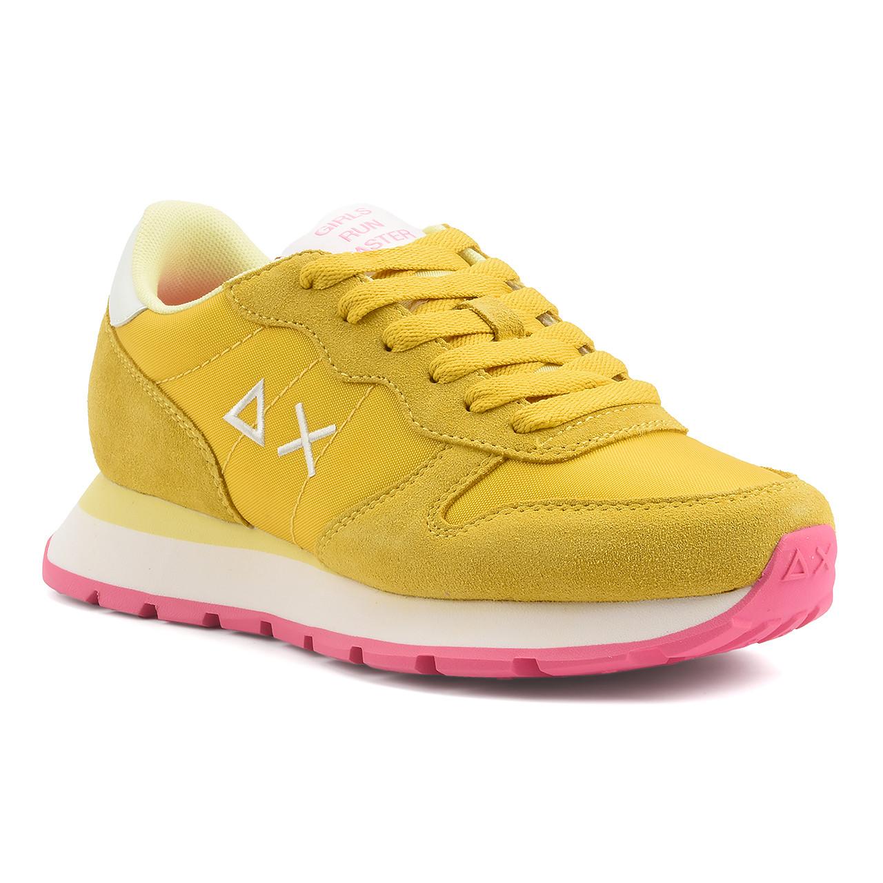 Le solette interne rimovibili in tessuto offrono ulteriore adattabilità e personalizzazione. Le suole sintetiche garantiscono durata e resistenza all'usura. I tacchi misurano 30 mm, offrendo leggerezza e facilità di movimento. I dettagli della scarpa includono velluto e pelle tessile, aggiungendo un tocco di raffinatezza e stile. Il colore giallo dona un tocco di freschezza e gioia, completato da lacci gialli che si fondono perfettamente con il colore della scarpa. Il logo del marchio, composto da due triangoli sovrapposti che formano una "X", è visibile sul lato della scarpa, aggiungendo un tocco di personalità e stile.
