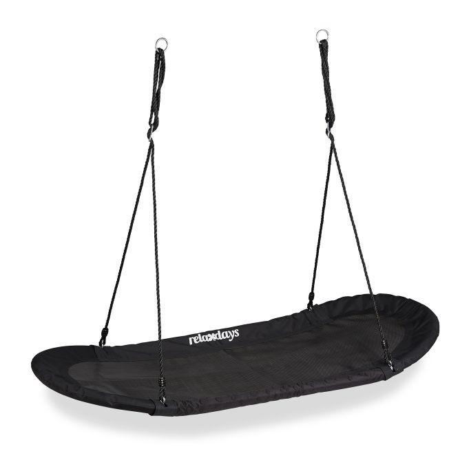Con questa grande altalena piatta nel tuo giardino, regalerai grande gioia a tutta la tua famiglia. Per un'esperienza di dondolamento ottimale, l'altalena a nido viene fissata a un albero o a un telaio per altalena con 2 corde. Puoi decidere tu stesso l'altezza appropriata. Fino a 2 bambini possono divertirsi a dondolarsi avanti e indietro sulla seduta ovale. Ma anche per gli adulti, la comoda superficie di appoggio con telaio imbottito offre il comfort perfetto per leggere o semplicemente rilassarsi.