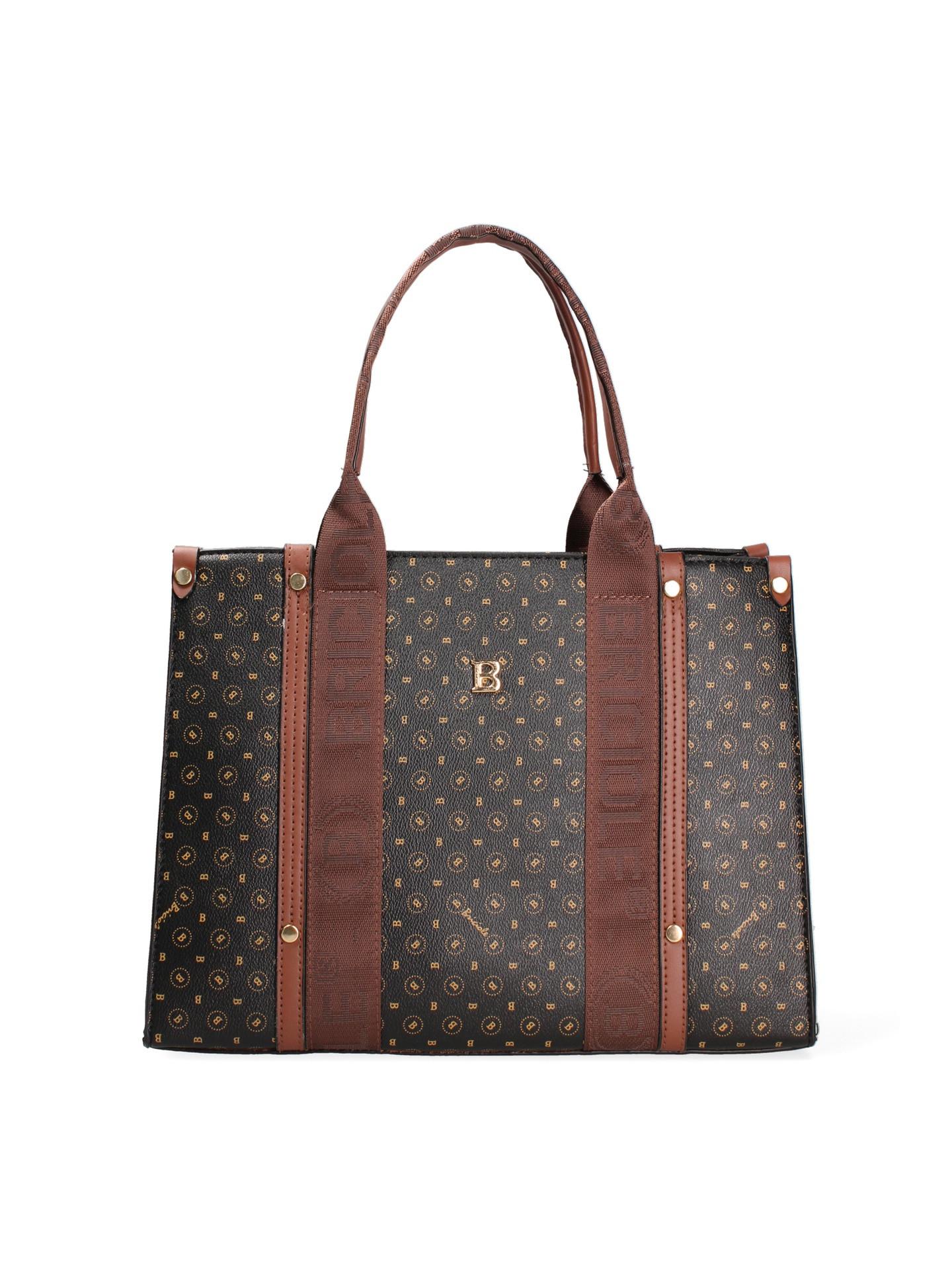 Questa borsa a tracolla presenta un elegante motivo a monogramma e un design spazioso, rendendola un accessorio versatile per l'uso quotidiano. La borsa è dotata di manici robusti e di dettagli decorativi color oro, che aggiungono un tocco di eleganza alla sua pratica costruzione.