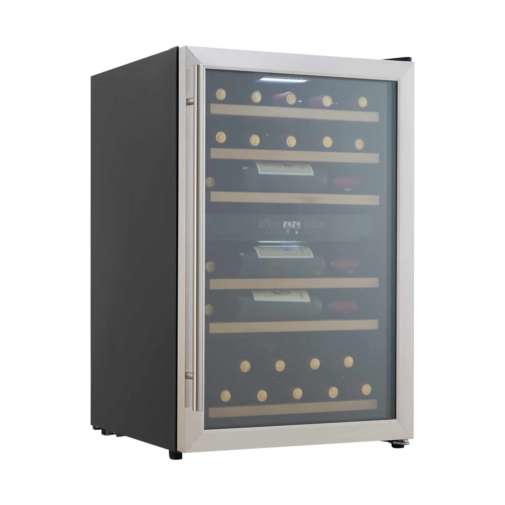 Il frigorifero per vini WS 9739 di NABO offre un controllo preciso della temperatura e una conservazione ottimale di 37 bottiglie. controllo della temperatura e una conservazione ottimale fino a 37 bottiglie di vino. bottiglie di vino, ideale per gli amanti del vino che cercano una soluzione flessibile e affidabile. e affidabile.Controllo elettronico della temperaturaPannello touch con visualizzazione della temperatura6 vani portaoggetti estraibili in legnoDue zone di temperaturaIlluminazione interna a LED e raffreddamento a convezionePorta in vetro con maniglia in acciaio inox, triplo vetroSistema invernale per un funzionamento stabileCon una capacità netta di 104 litri e spazio per fino a 37 bottiglie, la WS 9739 offre una capacità sufficiente per una collezione di vini versatile, anche per bottiglie alte 35 cm. Le due zone di temperatura possono essere controllate individualmente tramite un pannello a sfioramento con una gamma di 4-12°C nella zona 1 e 12-22°C nella zona 2, in modo da poter conservare in modo ottimale sia i vini bianchi che quelli rossi. e i vini rossi possono essere conservati in modo ottimale.L'illuminazione interna a LED assicura una piacevole presentazione delle bottiglie. una piacevole presentazione delle bottiglie, mentre il raffreddamento a circolazione d'aria assicura una distribuzione uniforme della temperatura. La porta in vetro con maniglia in acciaio inox è triplo vetro, che garantisce un ottimo isolamento e riduce il consumo energetico. fornisce un eccellente isolamento e riduce il consumo energetico. Il sistema invernale garantisce la funzionalità dell'apparecchio indipendentemente dalla indipendentemente dalla temperatura ambiente, ideale per gli ambienti più freddi. stanze più fresche.Il WS 9739 convince anche per il suo silenziosità di funzionamento con un livello di rumorosità di 39 dB(A) e il basso consumo energetico di 142 kWh all'anno. Grazie alle sue dimensioni compatte (540x845x548 mm), si inserisce in cucine o nelle zone giorno e combina la funzionalità con un design elegante. un design elegante.
