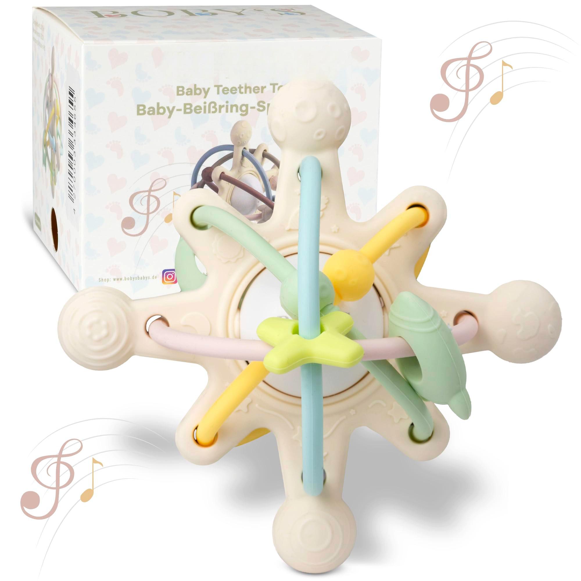 Activity-board Sensorischer Baby-Beißring/Motorikspielzeug aus BPA-freiem Silikon/Beißhilfe für Baby und Rassel in einem