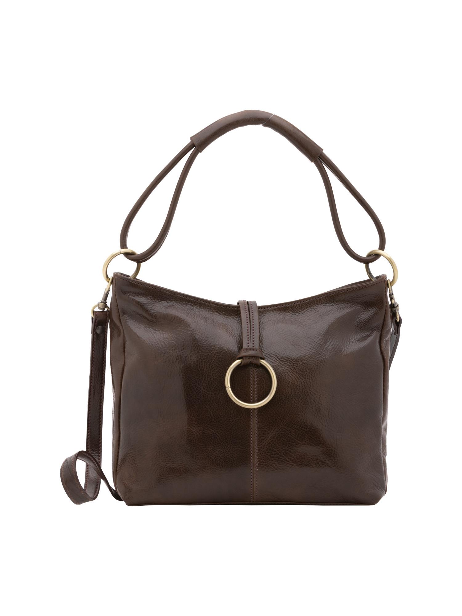 Questa borsa a tracolla offre un accessorio elegante e pratico per l'uso quotidiano. Il suo design presenta un prominente dettaglio ad anello sul davanti, aggiungendo un tocco di eleganza. La borsa è dotata sia di un manico superiore che di una tracolla rimovibile, offrendo opzioni di trasporto versatili per adattarsi a diverse preferenze e occasioni.