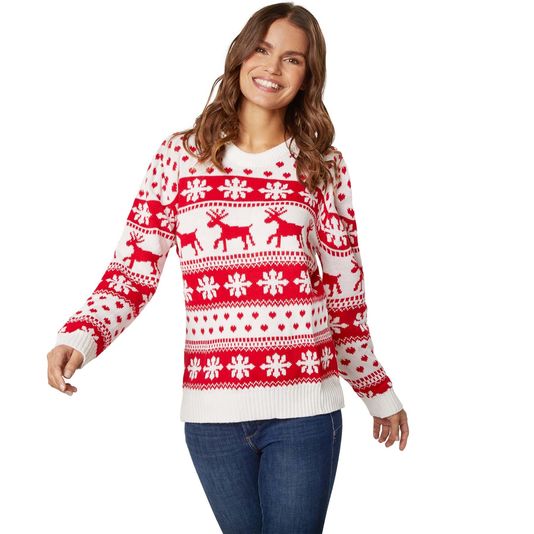 - Pullover invernale lavorato a maglia in bianco e rosso