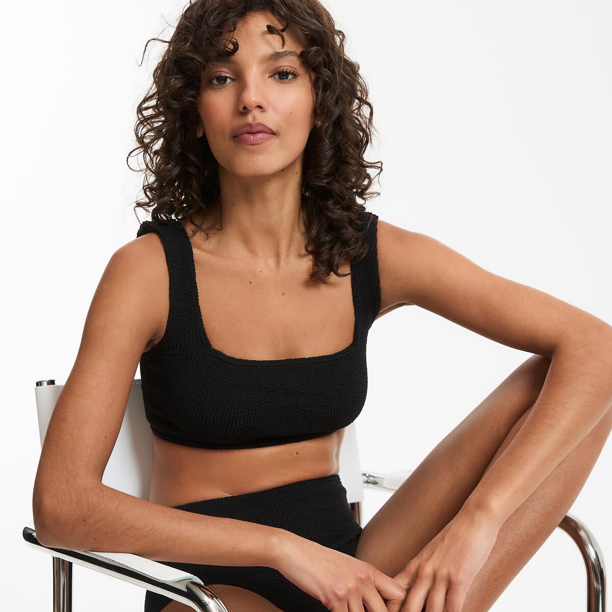 Questo top bikini taglia unica con scollo quadrato, realizzato in materiale stretch testurizzato, è progettato per adattarsi a diverse forme del corpo.