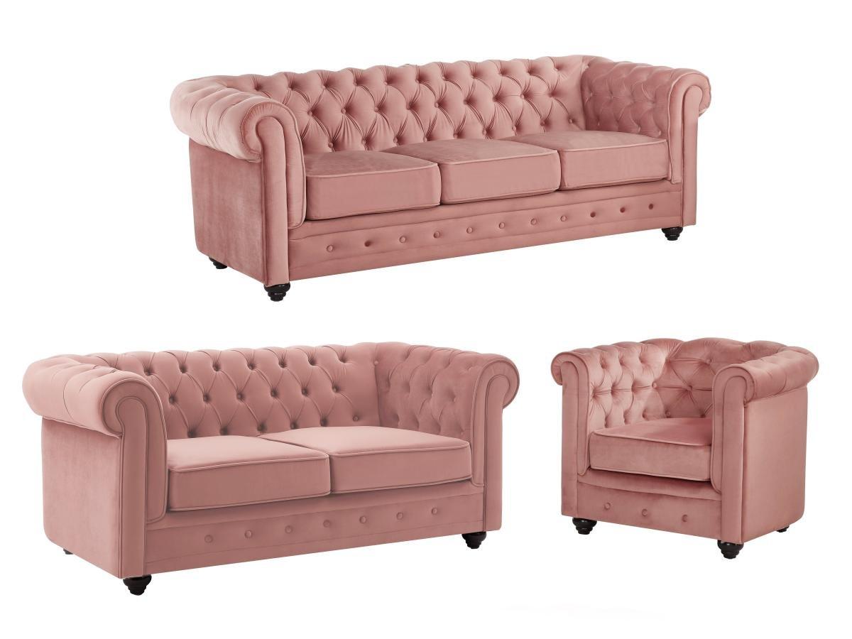 Vente-unique Divano 3 posti e 2 posti e Poltrona in Velluto Rosa pastello - CHESTERFIELD