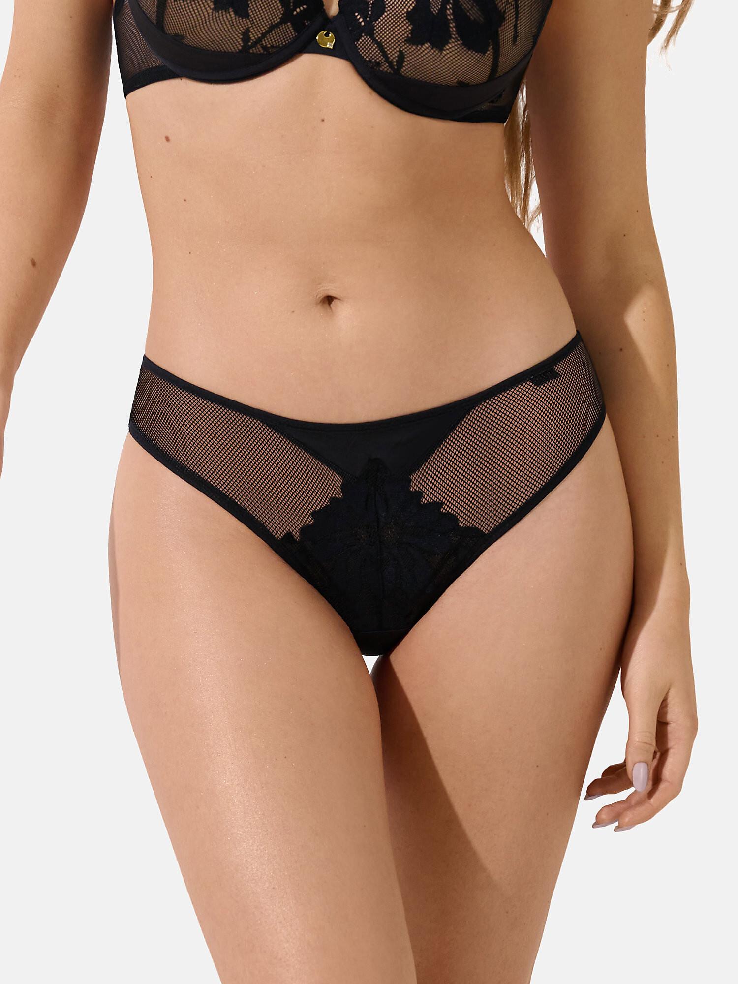 La bellissima e seducente lingerie in pizzo mostra un motivo floreale con dettagli di petali e fiori. È abbinata a una rete elastica, a una maglia liscia e a spalline decorative. Il design combina l'eleganza del pizzo con la delicatezza della maglieria, creando un aspetto seducente e delicato. Emerge un'attraente interazione tra il nascosto e il rivelato, che conferisce alla lingerie segretezza e fascino. Le aperture delle gambe sono rifinite con un morbido elastico, e un elastico piatto decorativo è cucito sulla vita. Un tassello in cotone garantisce un comfort intimo.