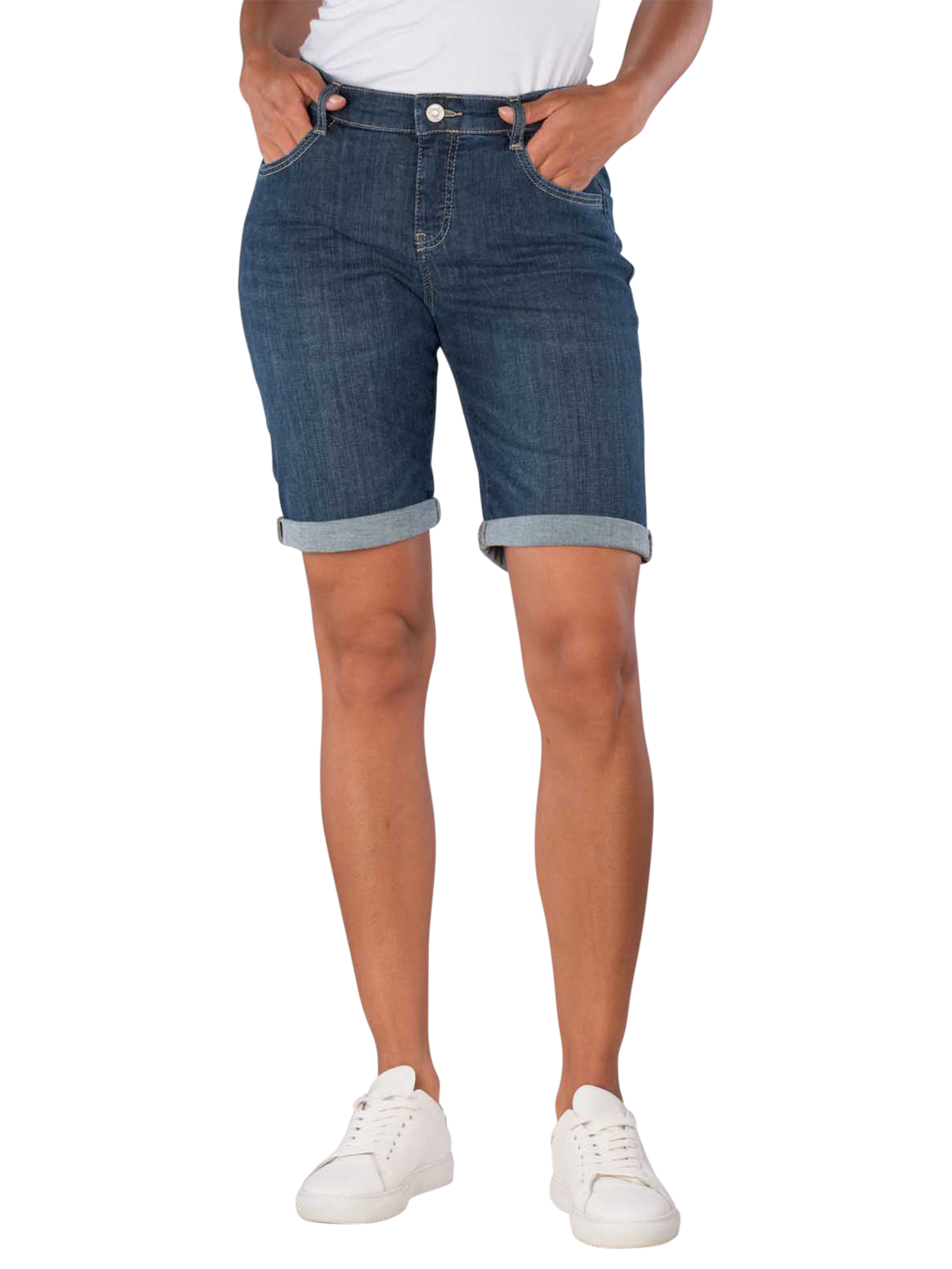 I jeans Mac Shorty in morbido denim leggero in un elegante blu scuro. Questi shorts casual da donna offrono un comfort piacevole e libertà di movimento grazie alla chiusura con cerniera e all'alto contenuto di cotone del 97%. L'elegante lavaggio basico conferisce loro un look senza tempo, ideale per l'estate.