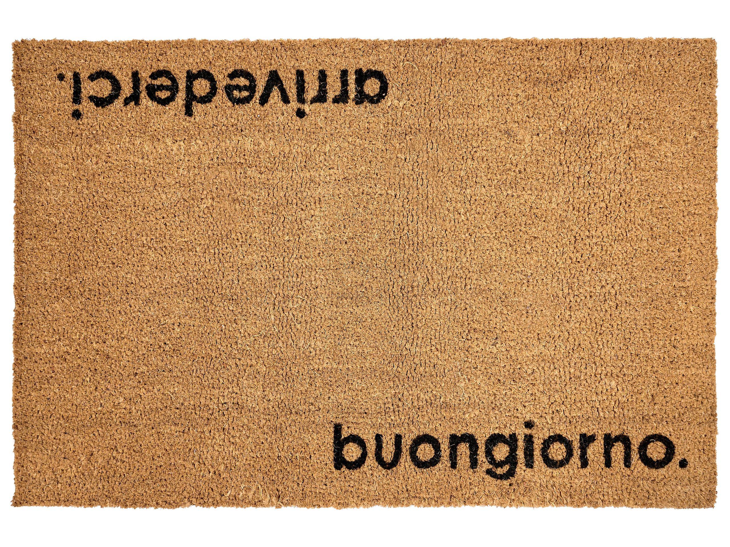 Zerbino di benvenuto con retro antiscivolo. Accogli gli ospiti con un tocco di fascino moderno grazie a questo zerbino unico nel suo genere. Realizzato in resistente fibra di cocco, durerà per molti anni aiutandoti a pulire scarpe da sporco e umidità. Caratterizzato dalle parole “buongiorno” e “arrivederci” scritte in nero, questo zerbino rettangolare è un complemento elegante e divertente per qualsiasi ingresso.