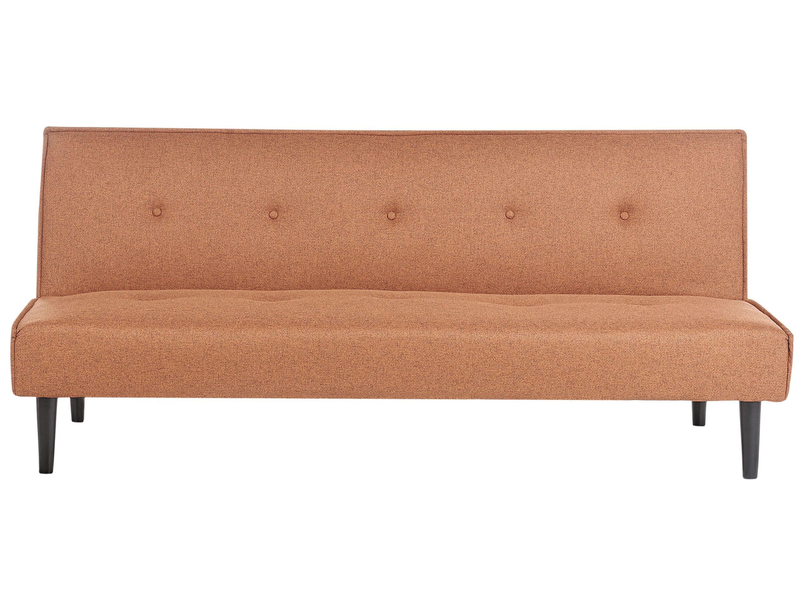 Divano a letto a 3 posti in tessuto. Rinnova il soggiorno con questo versatile divano letto compatto. Realizzato in tessuto di altissima qualità, senza braccioli, presenta una seduta generosamente imbottita e preziosi bottoni decorativi. I piedi in legno di caucciù assicurano una stabilità ottimale. Lo schienale regolabile consente di convertirlo facilmente in letto.