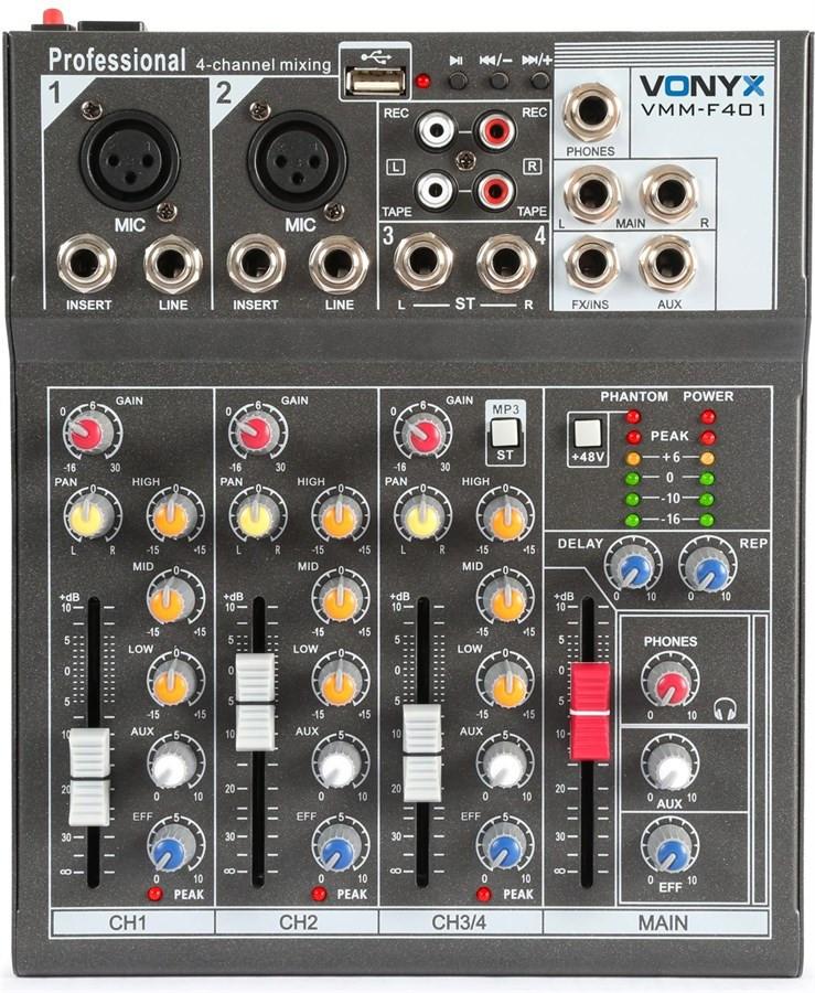 Vonyx, VMM-F401 4-Kanal Mixer, MP3, Echo