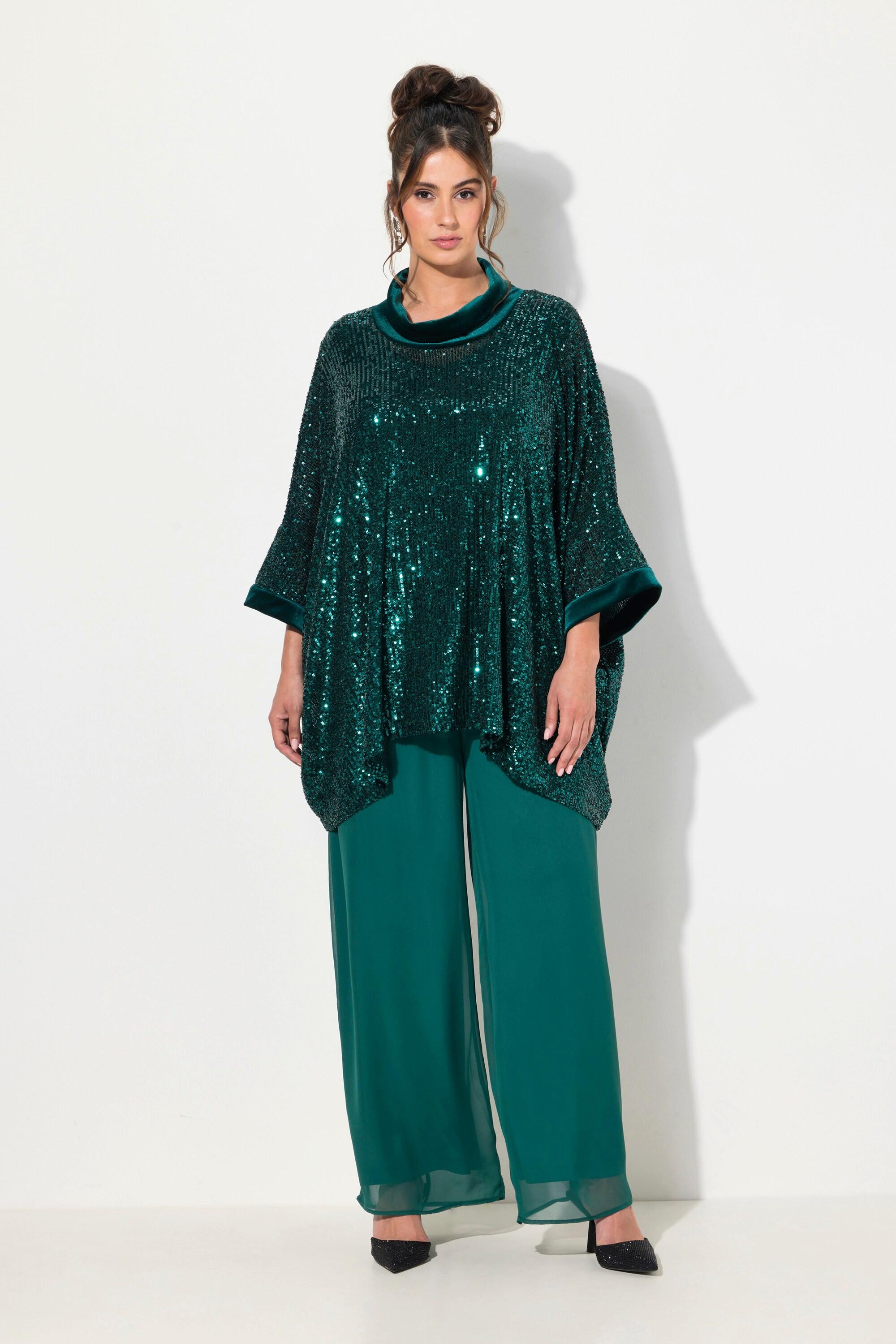 Ulla Popken Maglia Oversized con Paillettes Mezza Manica Collo Alto in Velluto