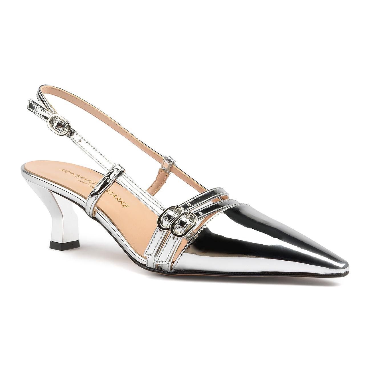 Le décolleté Trani Slingback sono scarpe di alta qualità per le fashioniste che cercano uno stile unico ed elegante. Queste slingback presentano una lucida vernice sintetica che riflette la luce, aggiungendo un tocco di raffinatezza a qualsiasi look. Le due fasce in pelle che coprono il piede sono adornate con piccoli lucchetti, conferendo a queste scarpe un tocco di raffinatezza. Una tracolla in pelle è fissata alla scollatura per una maggiore sicurezza. Le solette sintetiche assicurano un comfort ottimale, mentre le suole in pelle sono eleganti e resistenti. I tacchi misurano 50 mm, offrendo un'altezza moderata mantenendo la stabilità.