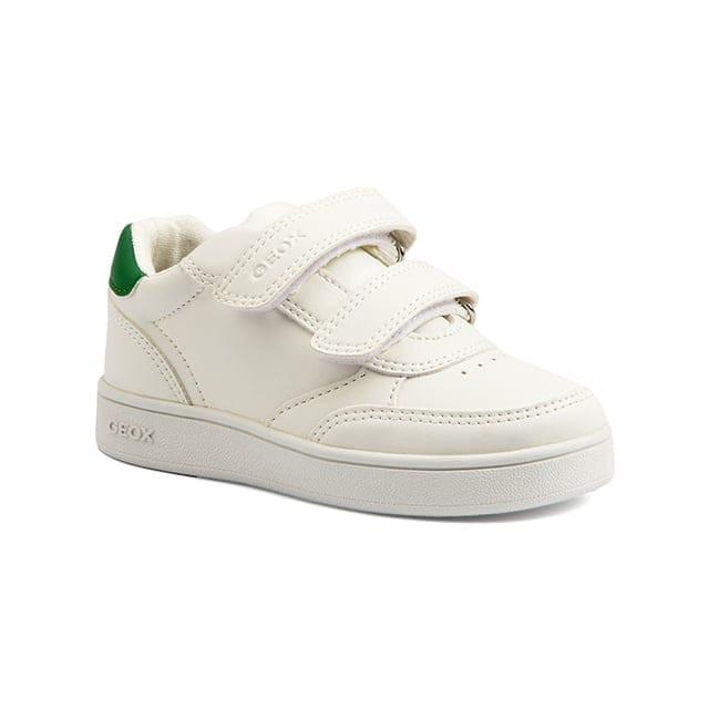 Gli stivaletti Eclyper sono progettati per un uso generale e quotidiano. Presentano uno stile chic e versatile, offrendo al contempo un comfort ineguagliabile. La tomaia sintetica e la fodera in tessuto garantiscono morbidezza e leggerezza per i piedi piccoli. Le solette interne rimovibili in tessuto offrono una flessibilità aggiuntiva. Le due fasce a strappo assicurano una calzata facile e veloce. Gli stivaletti Eclyper sono dotati di una suola in gomma, che offre durata e resistenza all'usura. Il loro design, con accenti verdi intorno al colletto, aggiunge un tocco di discreto contrasto. Il marchio "GEOX" è visibile sul lato della suola e vicino all'area di chiusura a strappo. Gli stivaletti Eclyper sono disponibili in bianco, un colore neutro e adatto a tutte le occasioni.