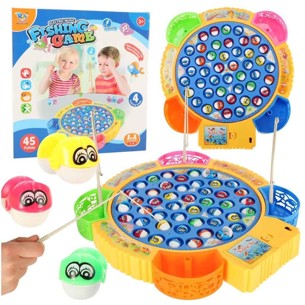 Un fantastico gioco per tutta la famiglia che coinvolge la pesca. composizione: 45 pesci, bancarella per pesci, 4 canne da pesca. 3 batterie AA da 1,5 V (non incluse). Base di pesce: 32 cm x 4 cm. Pesce: 3 cm x 2 cm