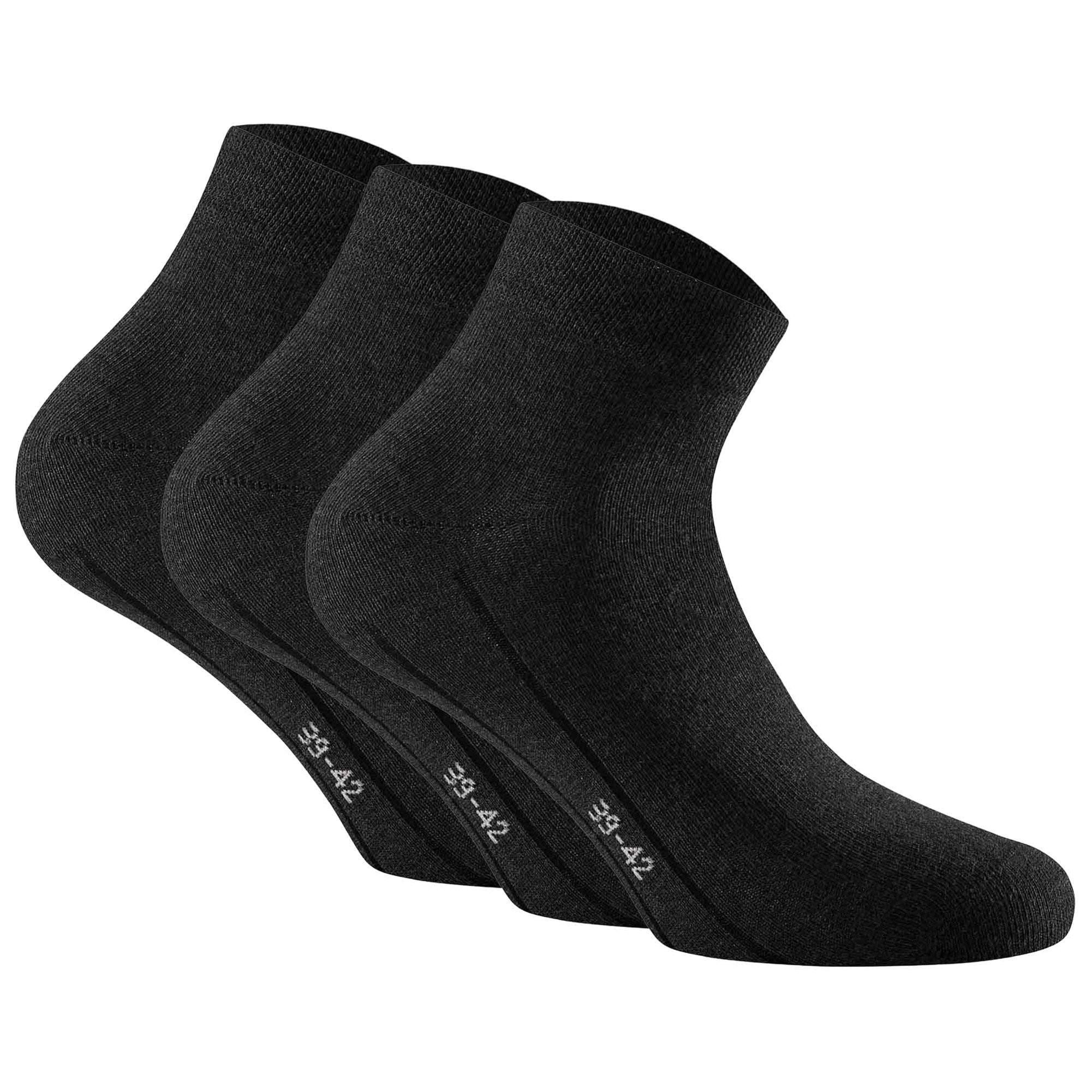 Questi calzini Rohner Basic Quarter sono disponibili in una pratica confezione da 3. Sono calzini di base con un alto contenuto di cotone, progettati per il comfort e la durata quotidiana.