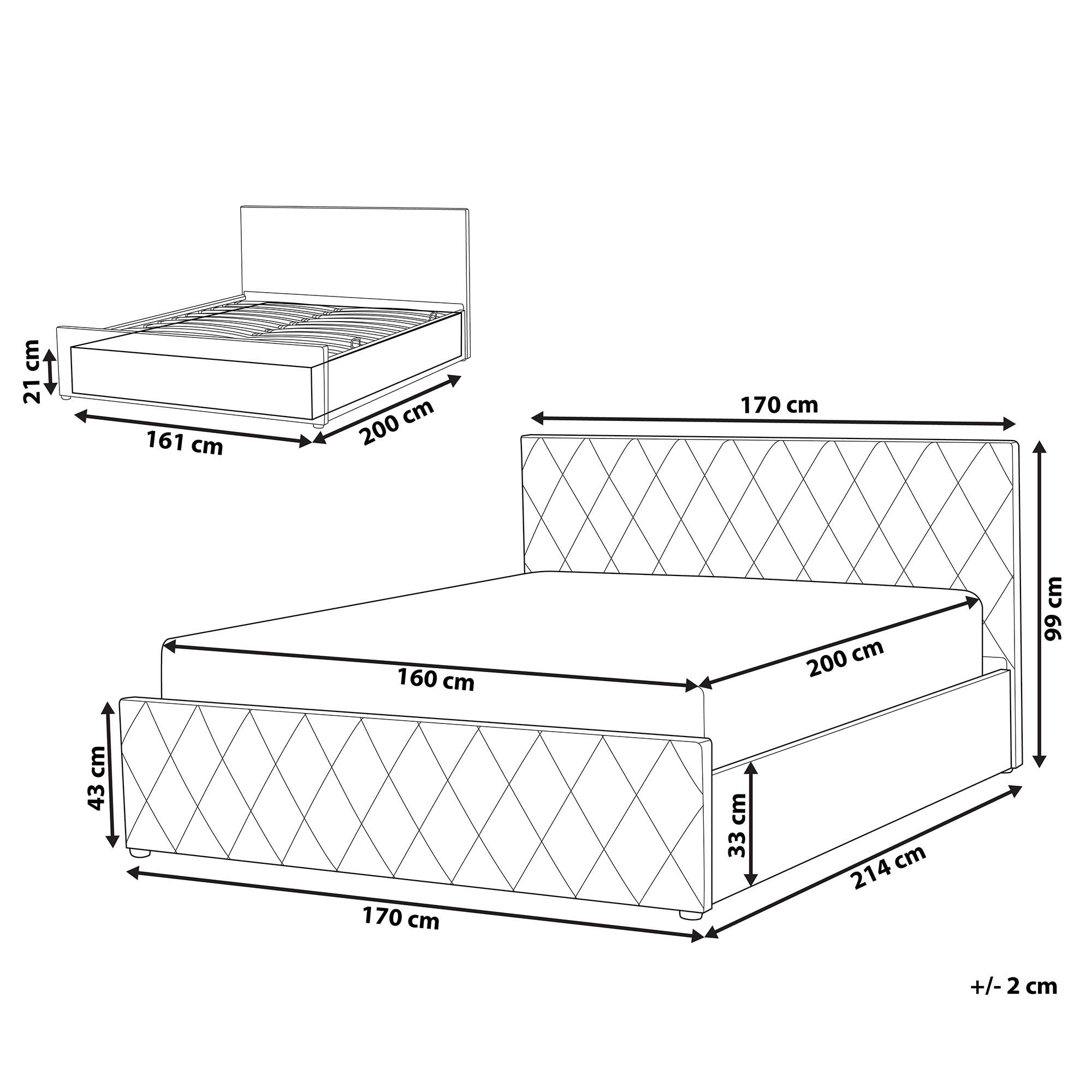 Superficie di sdraio: 160x200 cm
