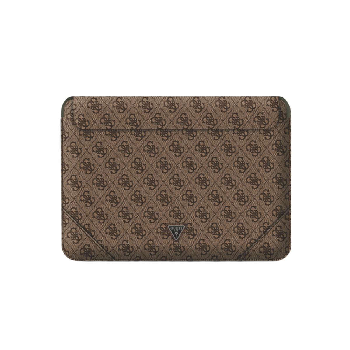 Questa custodia marrone per laptop 4G Triangle di Guess terrà il tuo laptop da 13 o 14 pollici al sicuro grazie al sistema di chiusura magnetica. Vero e proprio accessorio di moda, presenta una stampa senza tempo con il logo del marchio Guess in metallo dorato. Leggera e facile da trasportare, può essere portata a mano o infilata in borsa.