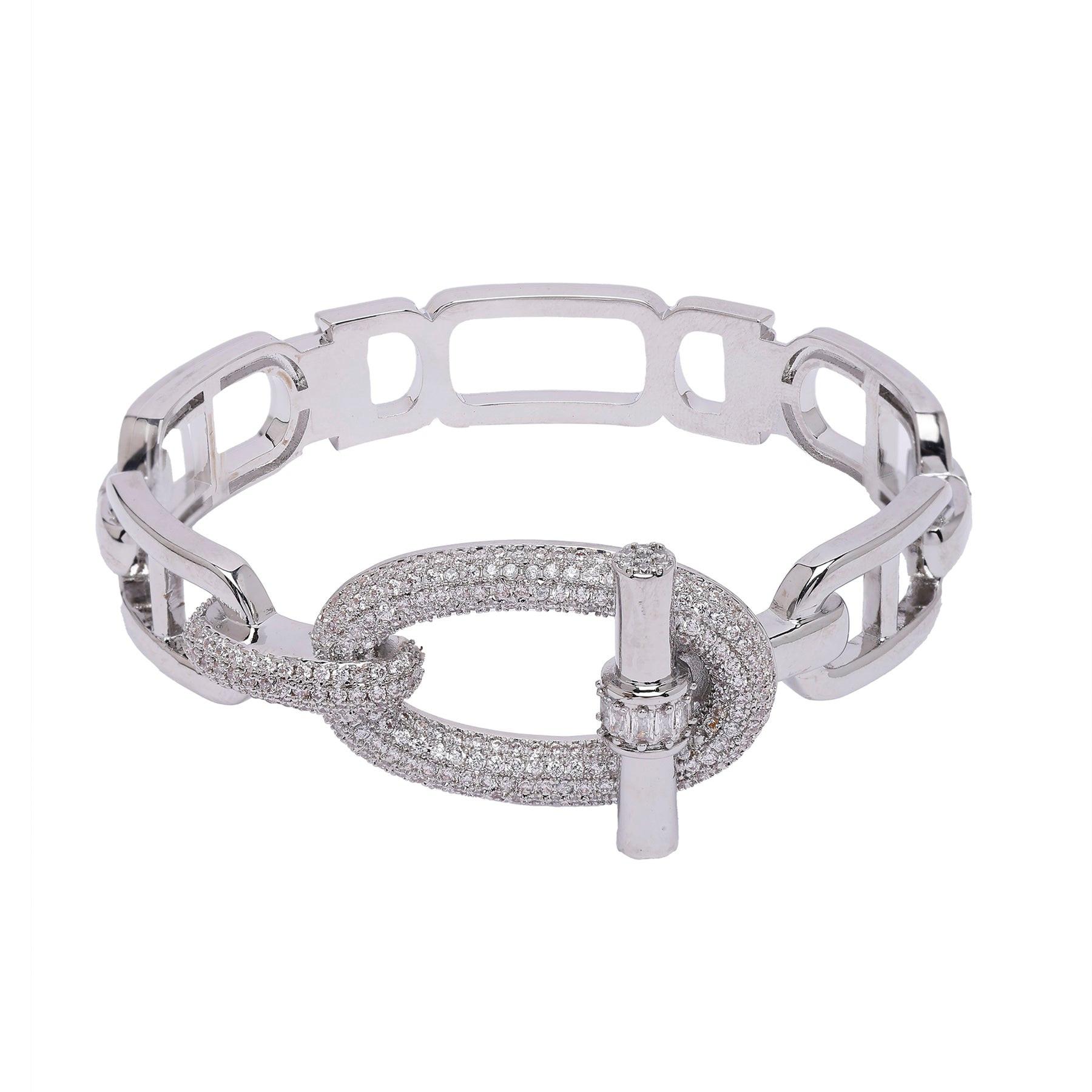 Il bracciale Diva Sterling Judith Ripka della collezione Diva, in argento e zirconi cubici, presenta un design raffinato ed elegante ispirato a Judith Ripka, nota per i suoi gioielli classici e senza tempo. Il bracciale è impreziosito da pietre di zirconi cubici, posizionate strategicamente per aggiungere brillantezza e valorizzare l'eleganza complessiva del gioiello. Puoi indossarlo in diverse occasioni, dall'uso quotidiano agli eventi formali, aggiungendo un tocco di raffinatezza e lusso a qualsiasi outfit. Questo bracciale è un'aggiunta sofisticata alla tua collezione di gioielli, che unisce lusso ed eleganza senza tempo. Dimensioni: Diametro: 6,5 cm | Placcatura: Placcata rodio | Chiusura: Cerniera