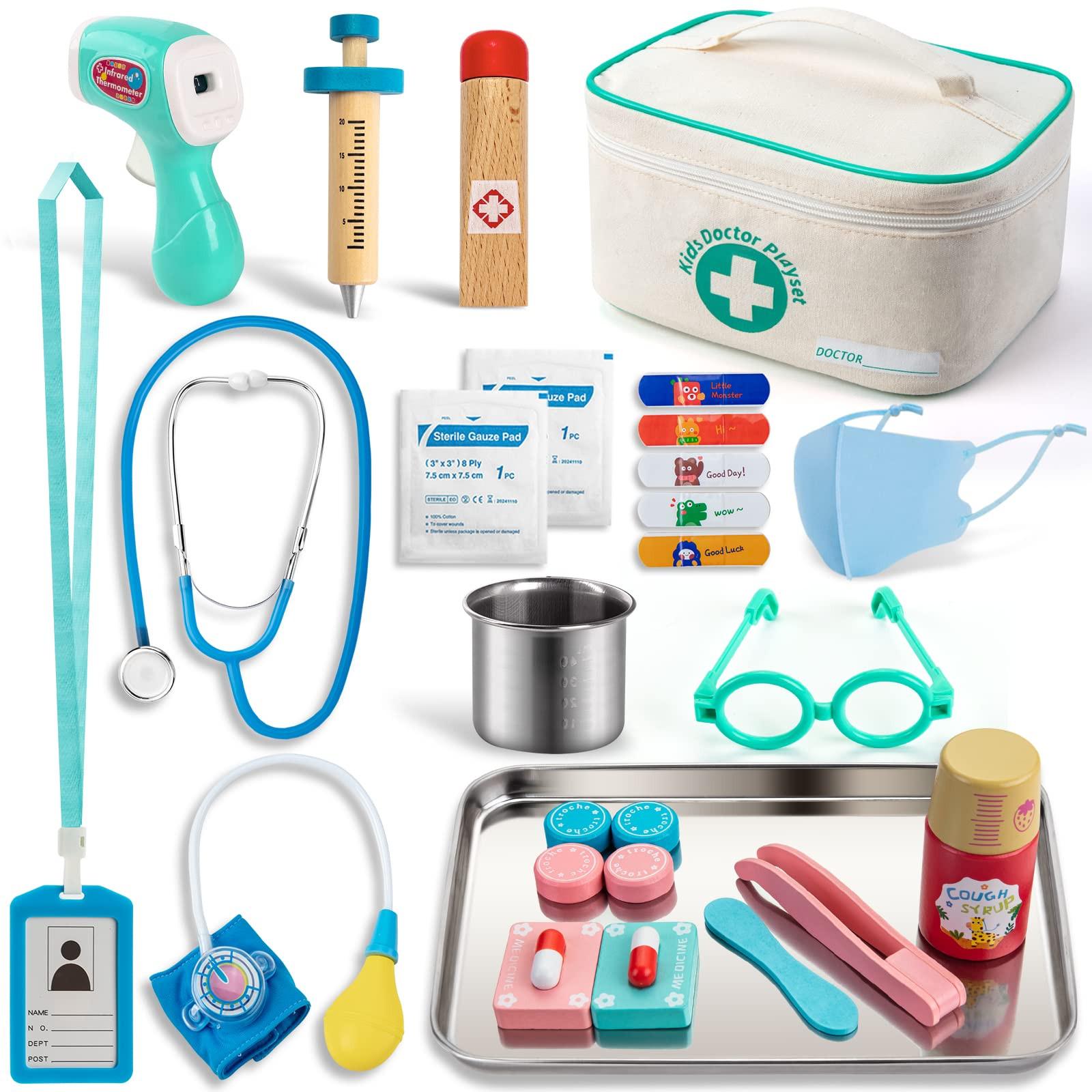 Activity-board, Arztkoffer Kinder Holzspielset mit echtem Stethoskop
