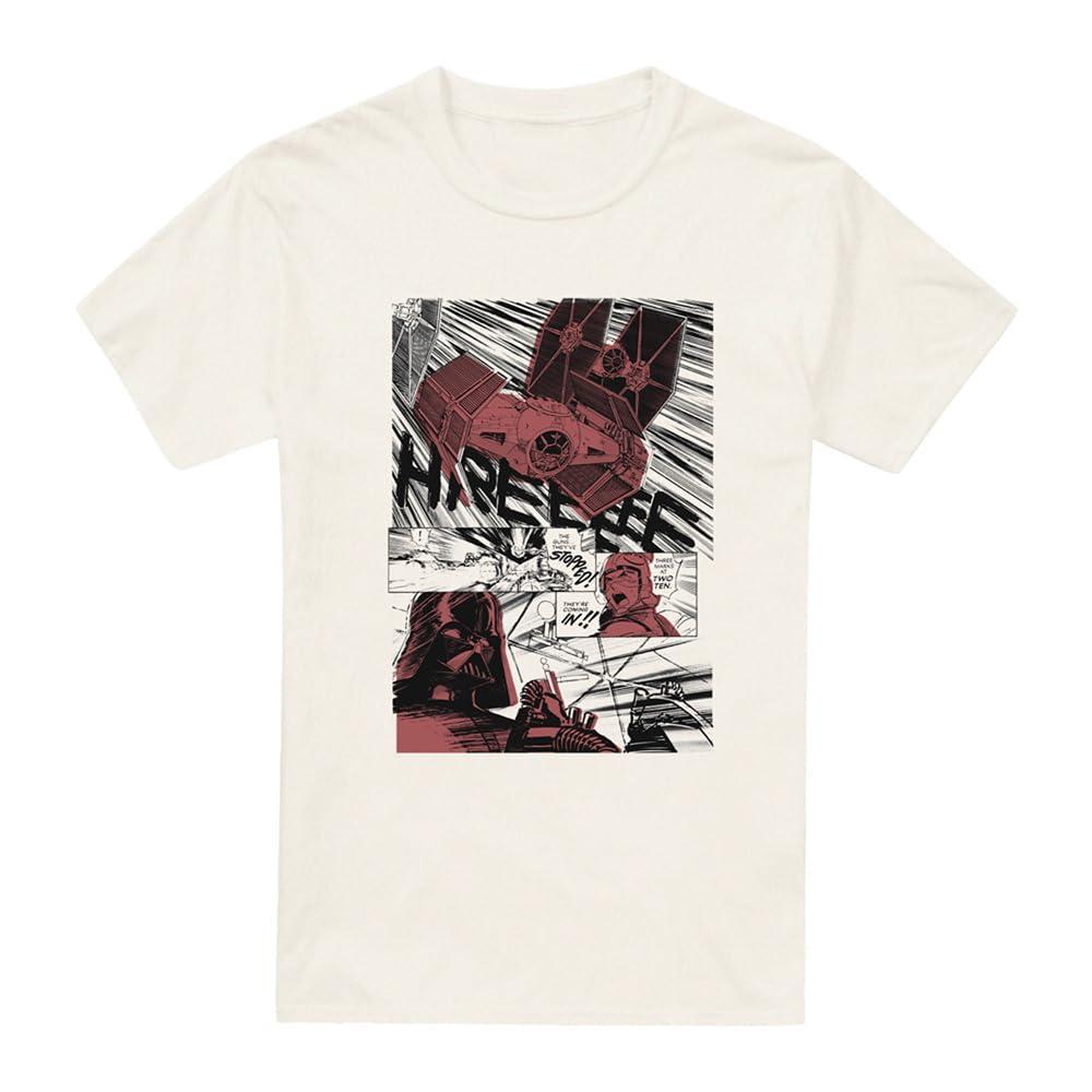 Questa T-shirt presenta una sorprendente stampa grafica ispirata all'Imperial Strike, che mostra immagini iconiche di una saga classica. Il design cattura una scena dinamica con linee audaci e una palette di colori limitata, conferendogli un'estetica distintiva da fumetto o manga. È un capo versatile che può essere incorporato in vari outfit casual.