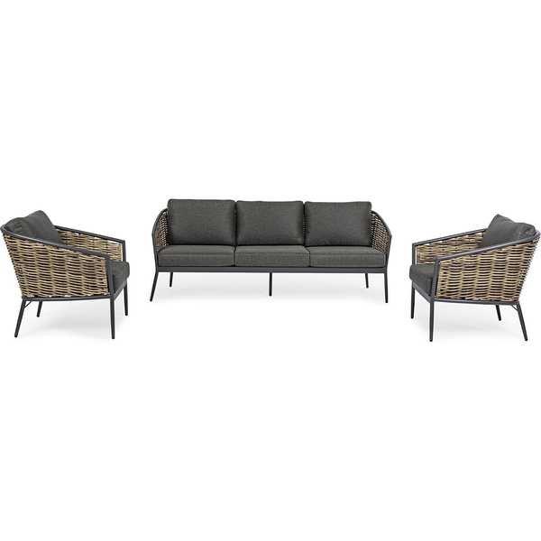 mutoni Seduta da giardino Maribela con cuscini antracite (3 parti)